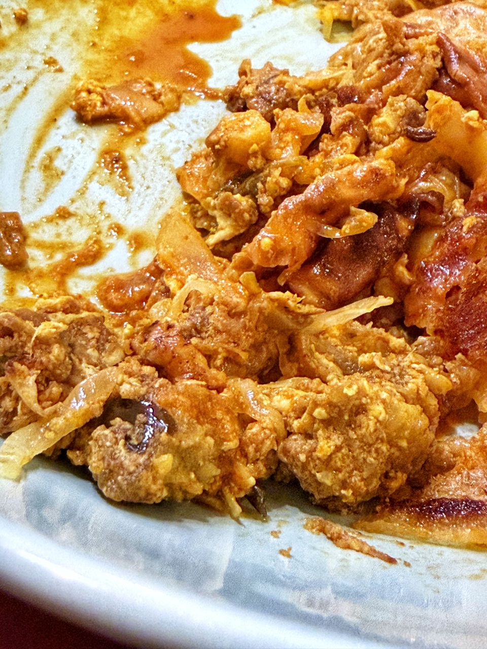 Jen had the Mee Goreng and noted it was very well seasoned. She prefers her noodles on the soft side, which is exactly how they were prepared. Her only small critique was that it would have been even better with the addition of tauhu goreng. Interestingly, she took the pickled onions intended for the murtabak and added them to her mee goreng for an extra tang.