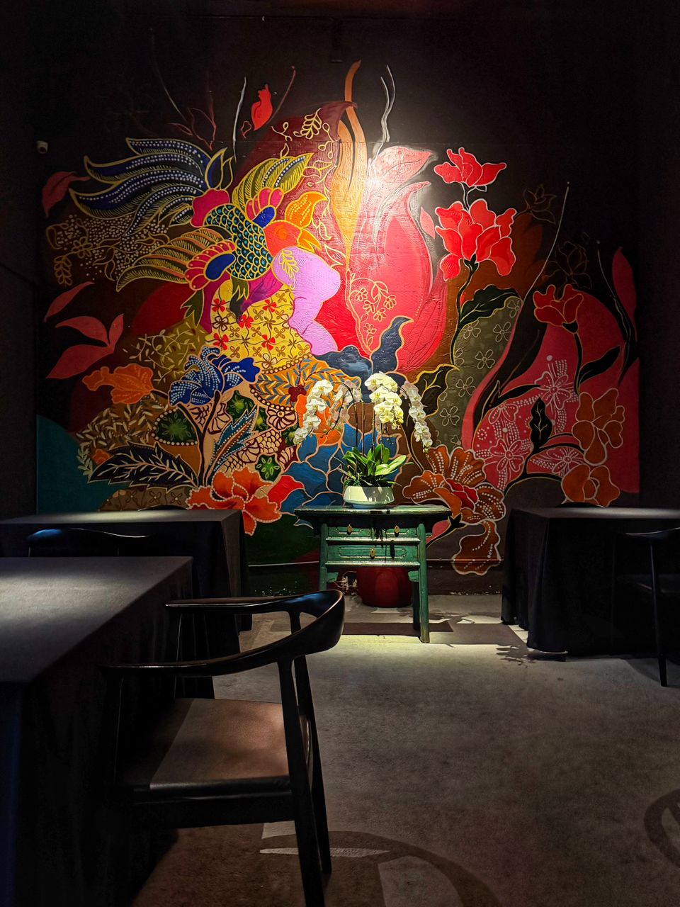 The restaurant offers a fancy, sleek, and intimate atmosphere with a minimalist luxury aesthetic that incorporates Malaysian heritage elements. While the setting is undeniably refined, the logistical issue of the external restroom slightly impacts the overall convenience.