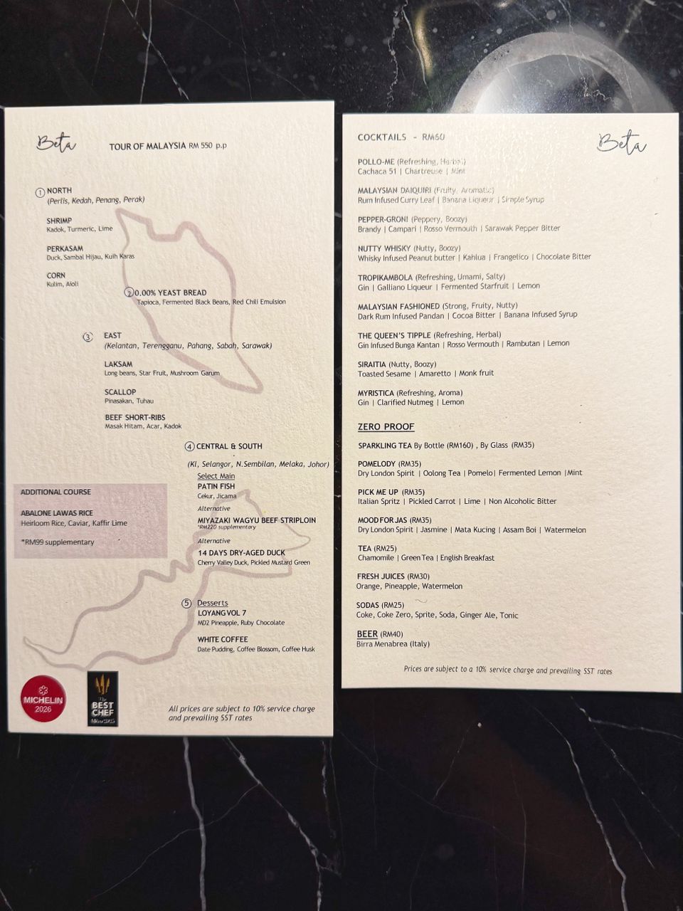 Beta KL Tour of Malaysia Menu