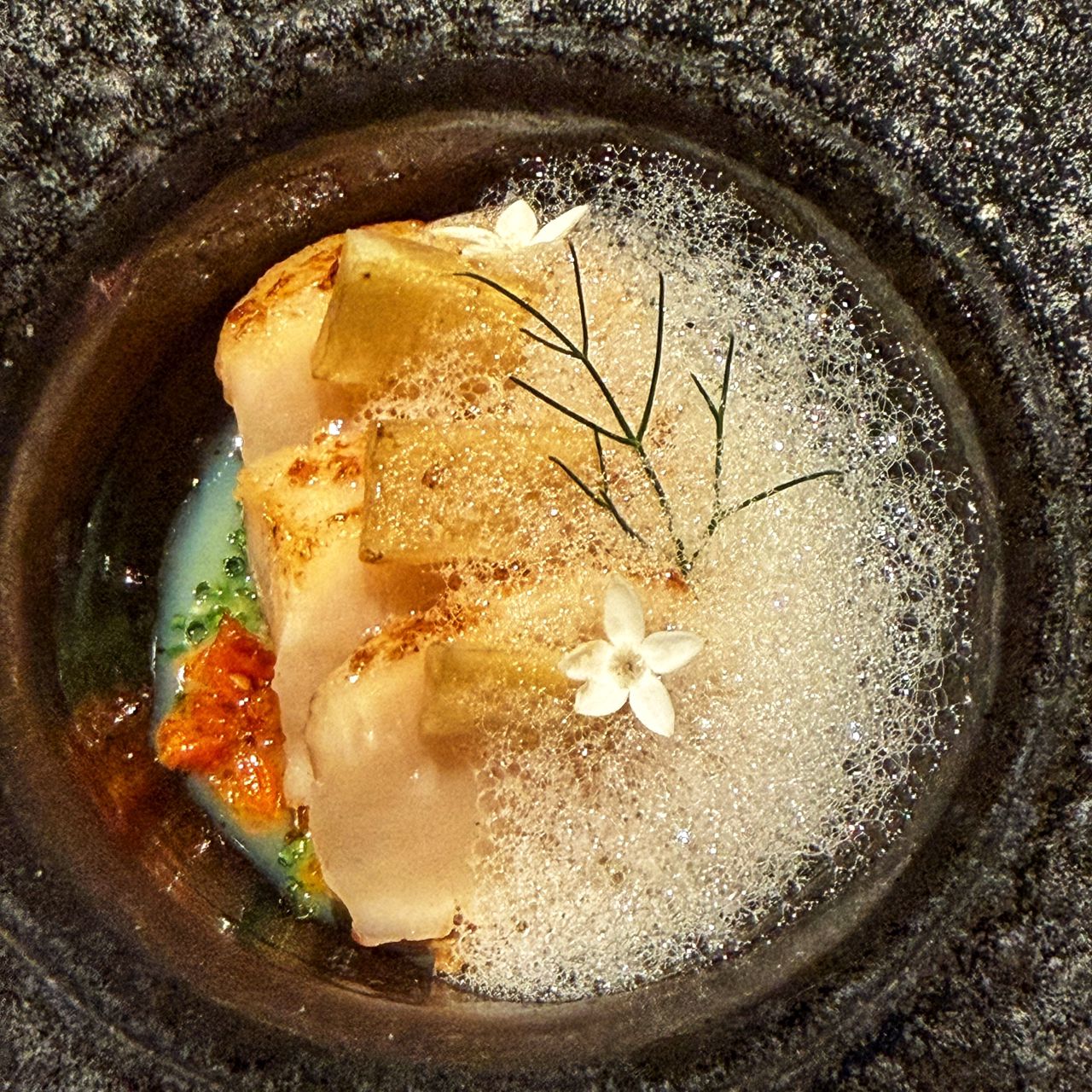 Scallop. This dish is an East Malaysian inspired dish with elements of Pinasakan and Tuhau in it.