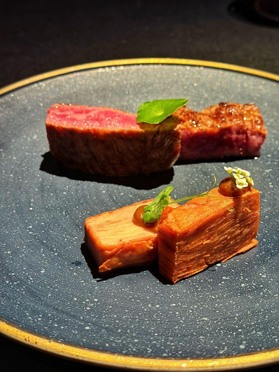 The main course of steak was the highlight of the meal for me. I was particularly impressed with the restaurant's flexibility; my dinner partner, who does not eat any type of seafood, had those courses seamlessly replaced with alternative ingredients. While the meal was highly enjoyable, some of the liquid nitrogen theatrics, which I might have once appreciated, now feel a bit bothersome.