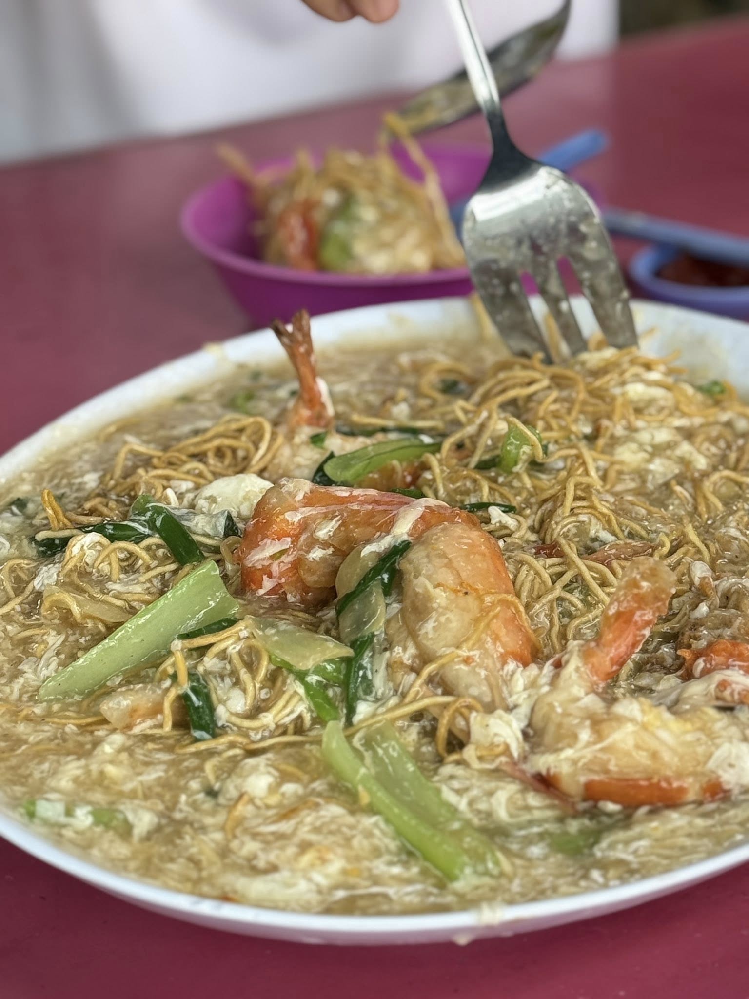 If you want fresh prawn e-fu noodles, remember to order early, or you'll have to come back tomorrow!