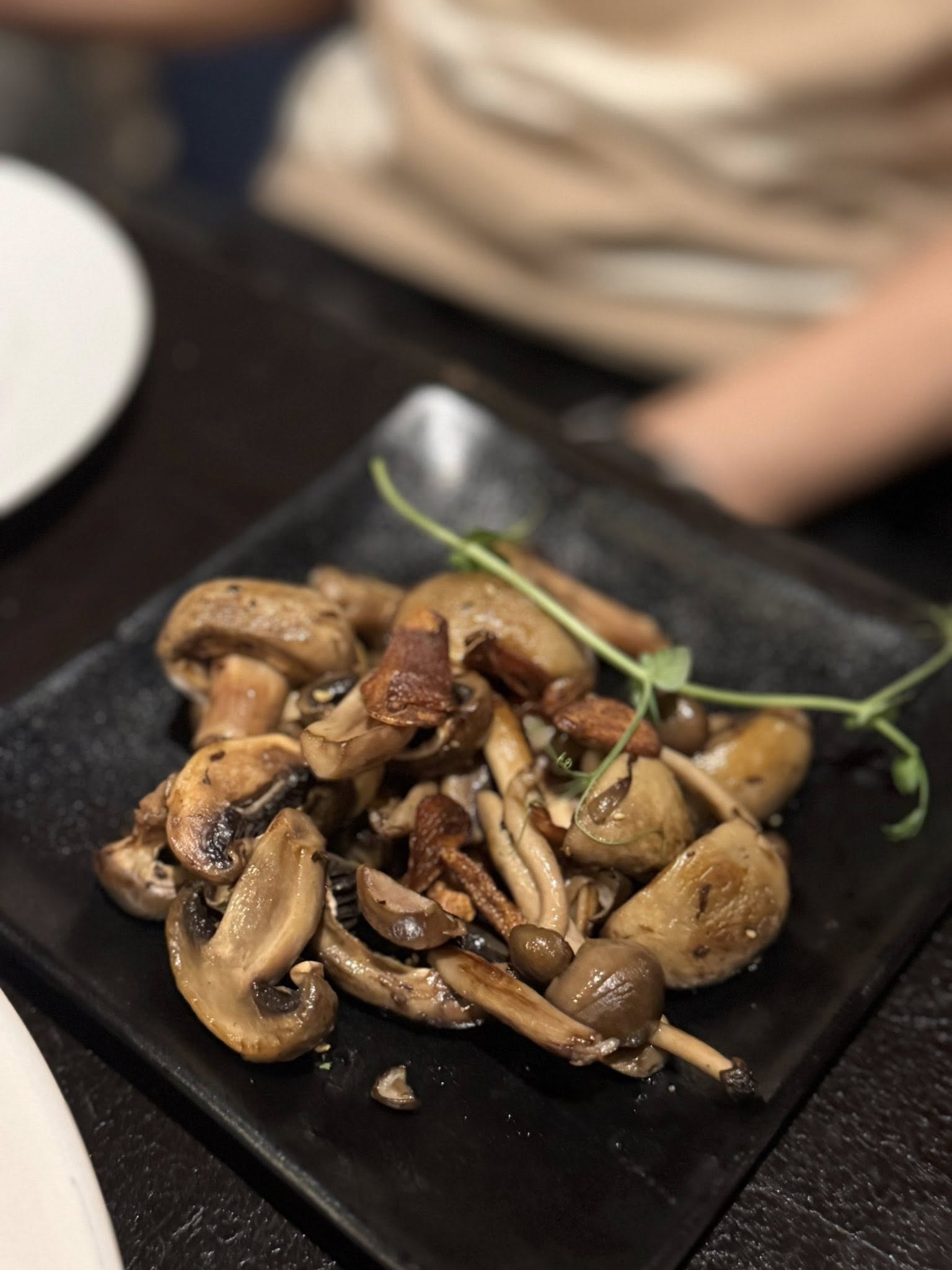 Mash, honey potato and sautéed mushrooms. All done very well.