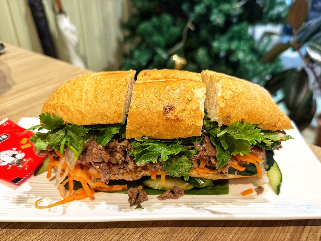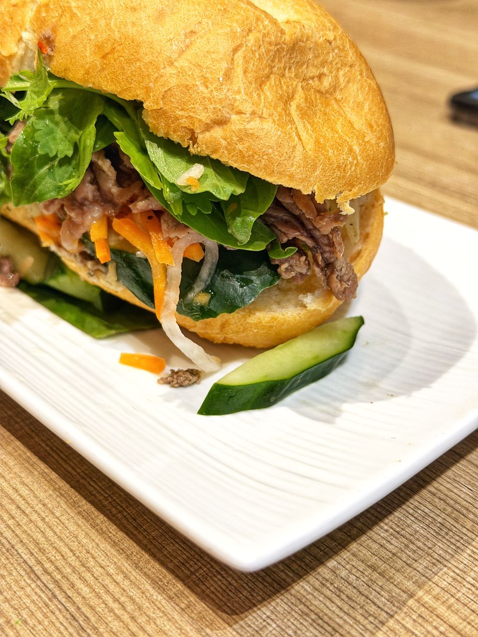 The X-factor is the beef portion size, but it is unfortunately overshadowed by the incorrect bread choice. A Banh Mi’s identity is tied to its crispy baguette; substituting it with a soft bun removes the core element that makes the dish unique.