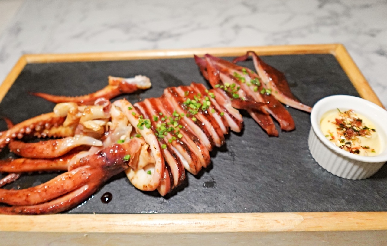 Char-grilled whole Argentinian squid, served with aioli dip.