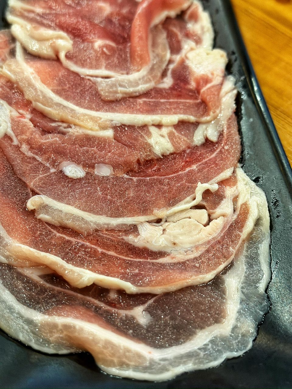 We ordered two types of broths — the Pork Bone Broth and the Suan Chai Broth. The pork bone broth was clear, light, and comforting, while the suan chai version, with its orangey hue, carried that appetising tang of pickled vegetables that really warms you up.