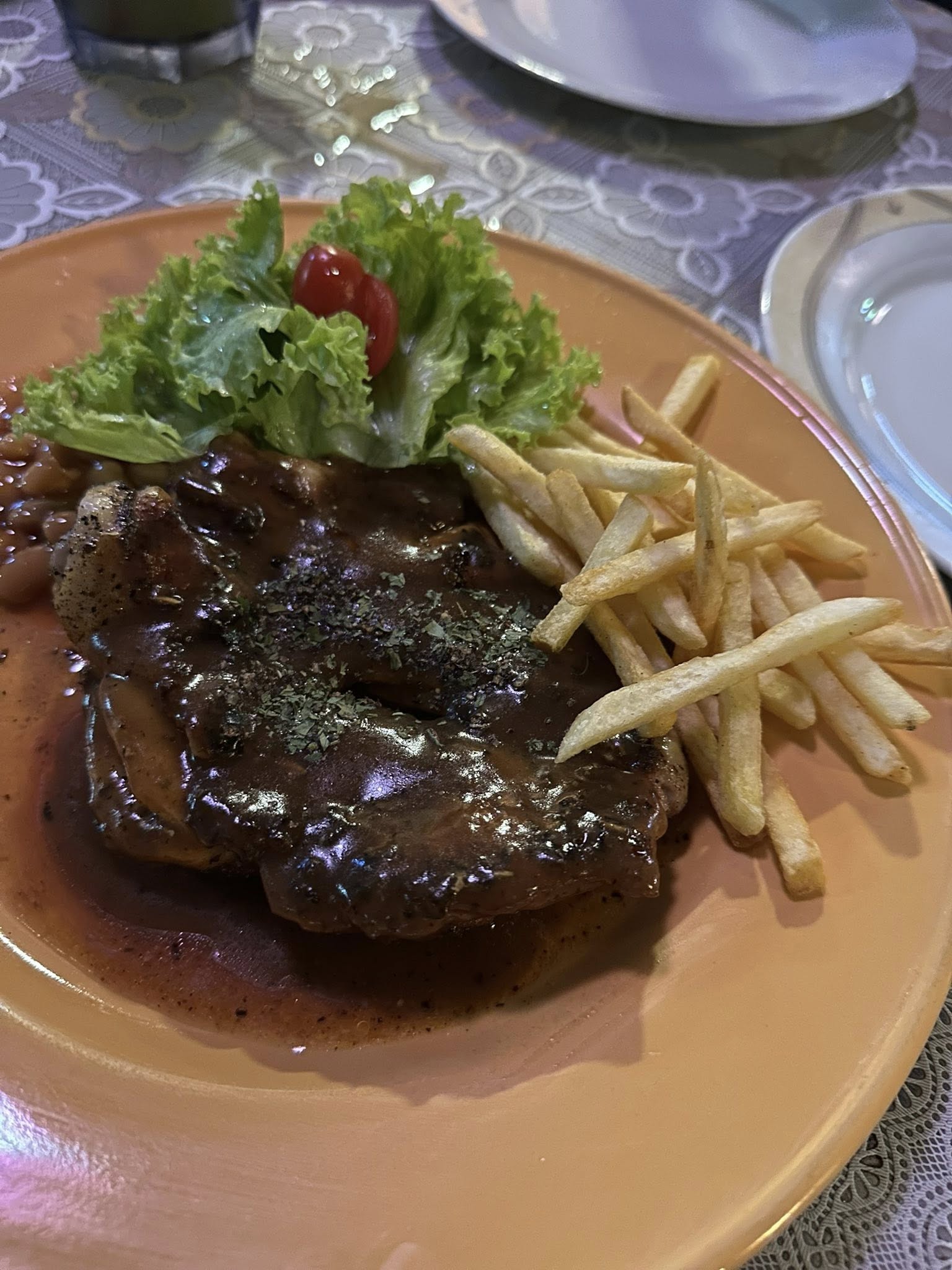 El'S Kitchen paling best in Bentong. The Rib-eye (RM80) test can be done in medium rare. This my beef test. Black pepper sauce oso gud.