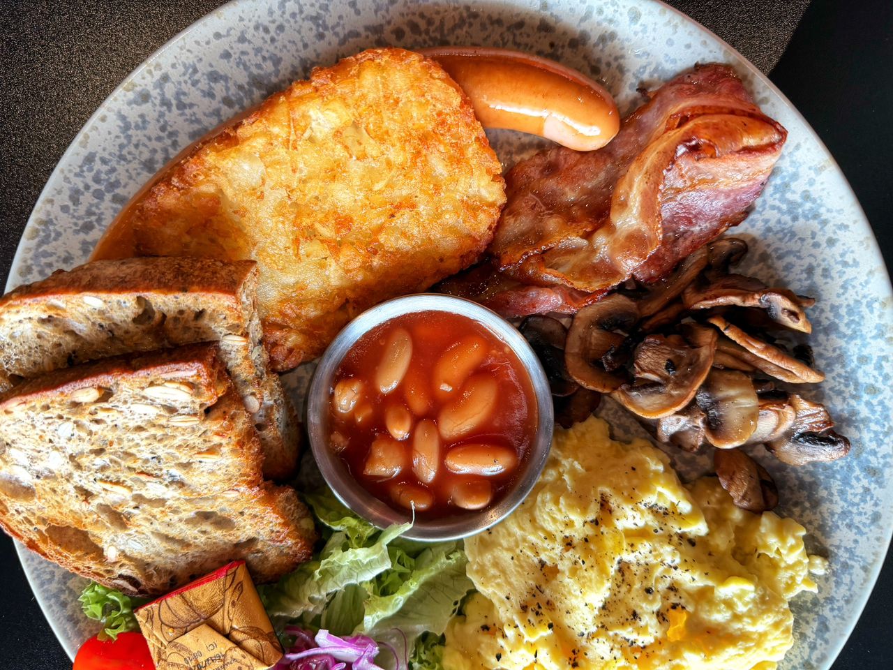 I started with the Big Breakfast but found the standard sausage uninspiring and the eggs unfortunately overcooked. The highlight of the main plate was actually the bread, which offered a nice texture compared to the rest of the meal. But that’s a real letdown to pay for a meal where only the bread offers some semblance of delight.