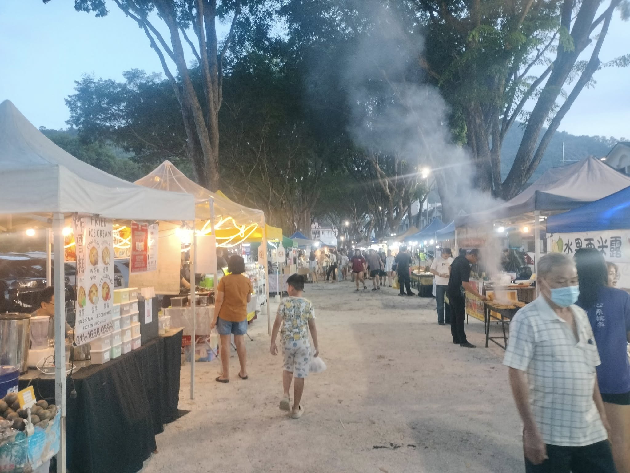 Dinner at the Farlim Wednesday Night Market. Bustling place for food & drinks. Lots of people.