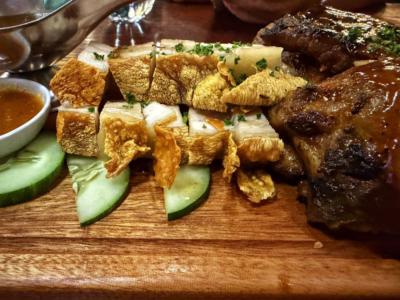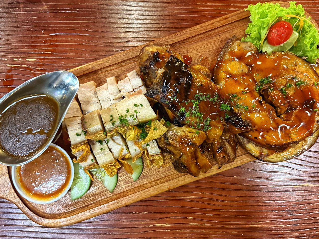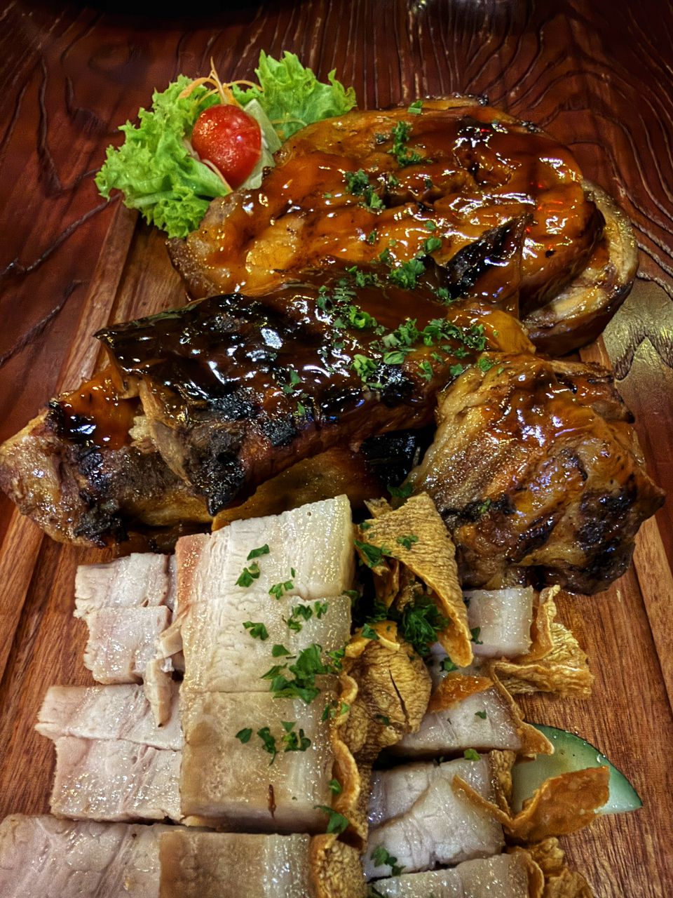 I went straight for the Porky Platter, the kind of dish that usually says everything you need to know about a place that specialises in meat. What arrived looked good: thick cuts of roasted pork, grilled pork belly, and house sauces served on a wooden board.