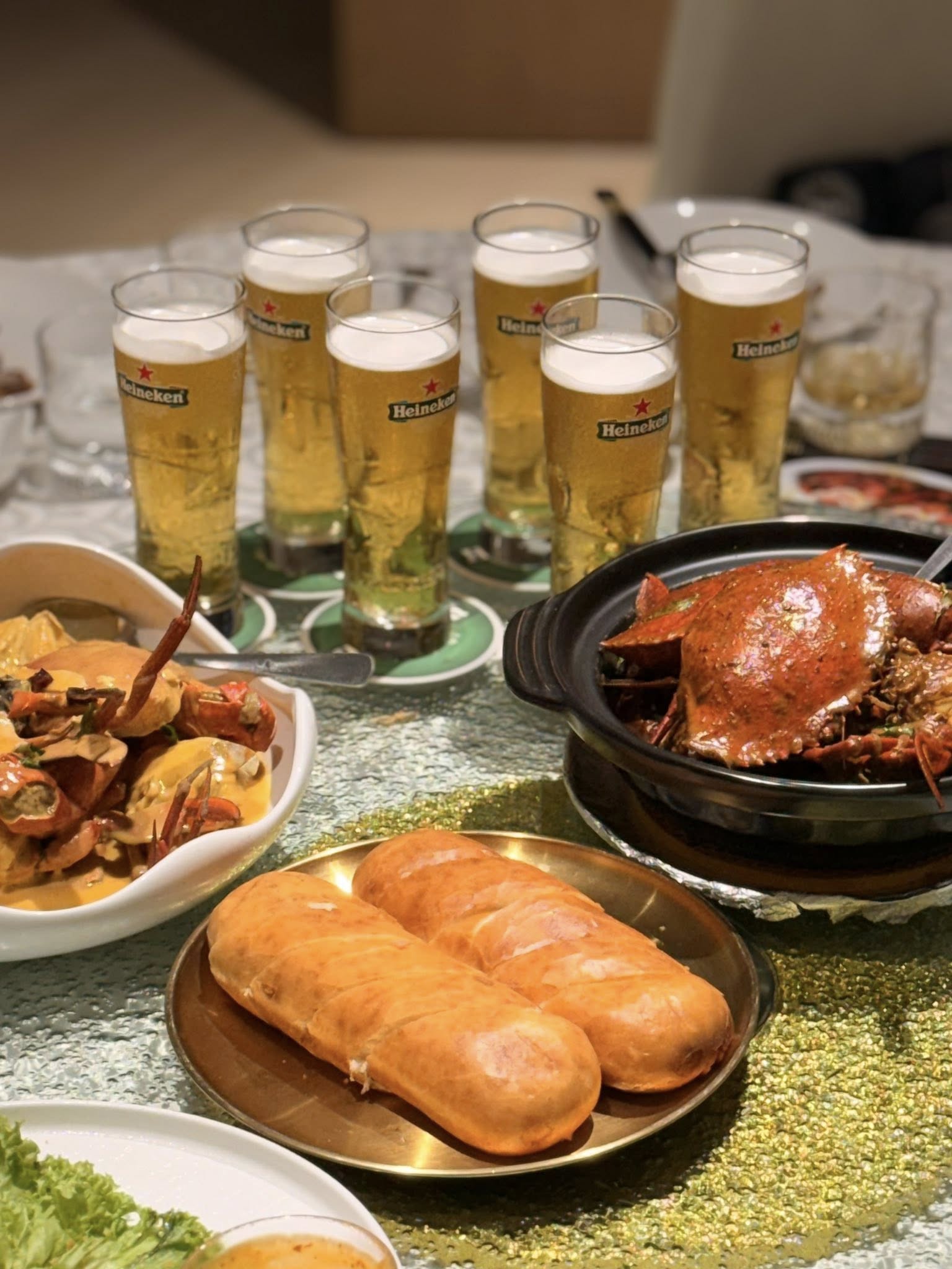 当然,最让啤酒爱好者兴奋的还是这里的重磅优惠——吃蟹送 Heineken Draught Beer!买 XL 螃蟹送 1 杯,买 2 份送 3 杯;买 XXL 螃蟹送 2 杯,买 2 份送 6 杯;买 XXXL 螃蟹更豪气,最高直接送 9 杯!数量有限,喝酒的朋友一定要趁早来享受。几位朋友聚在一起,一边举杯一边啃蟹,配上啤酒的爽快感,整个气氛绝对是 high 到不行。