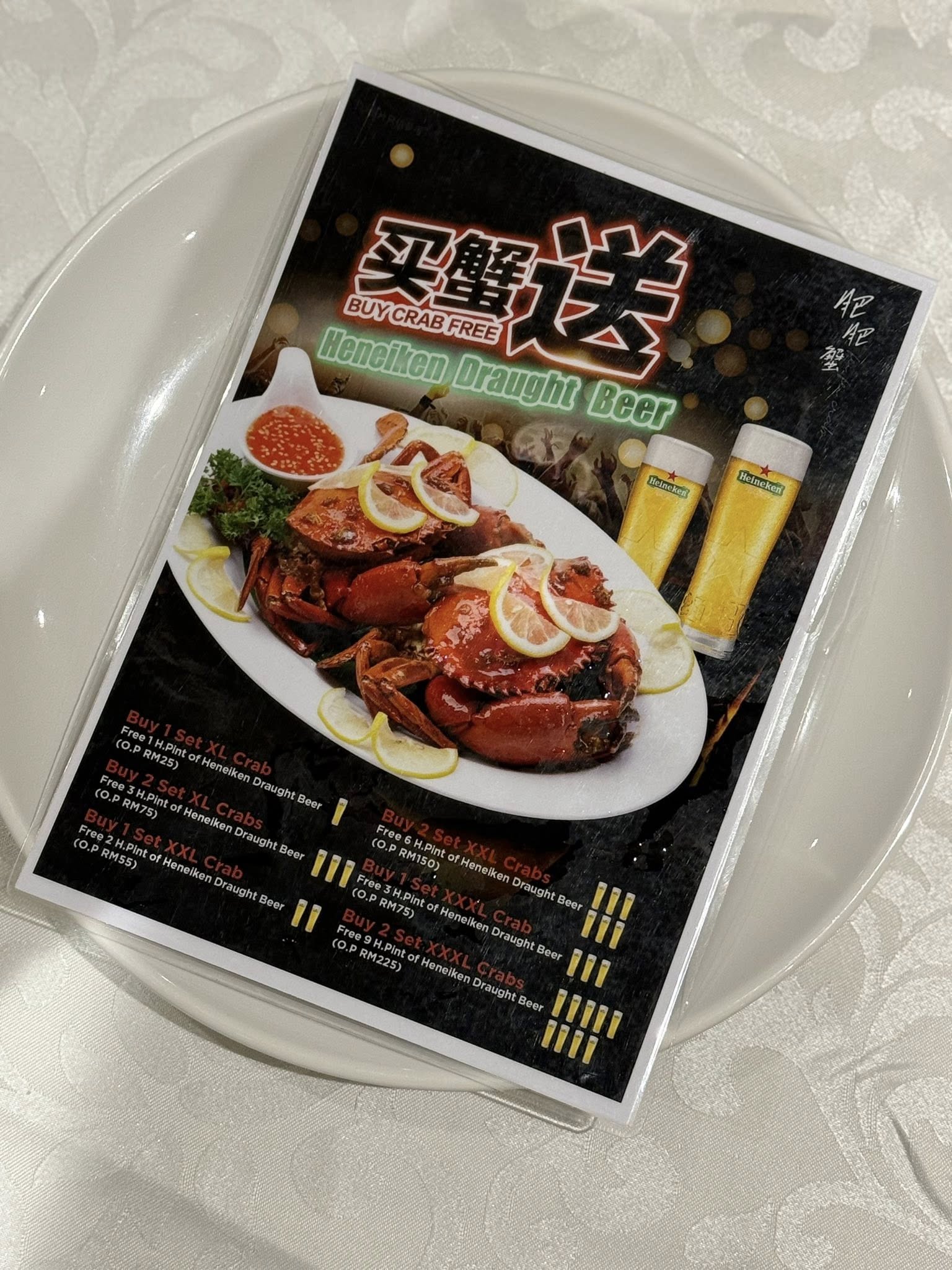 From the ambiance to the cuisine, Fei Fei Crab Desa ParkCity has transformed crab-eating into a truly ceremonial experience. It's a perfect spot for a casual dinner with friends, or for bringing parents or VIPs – a truly prestigious and fun experience. For a Kepong restaurant offering giant crabs, karaoke, and free draft beer, this is the perfect choice!