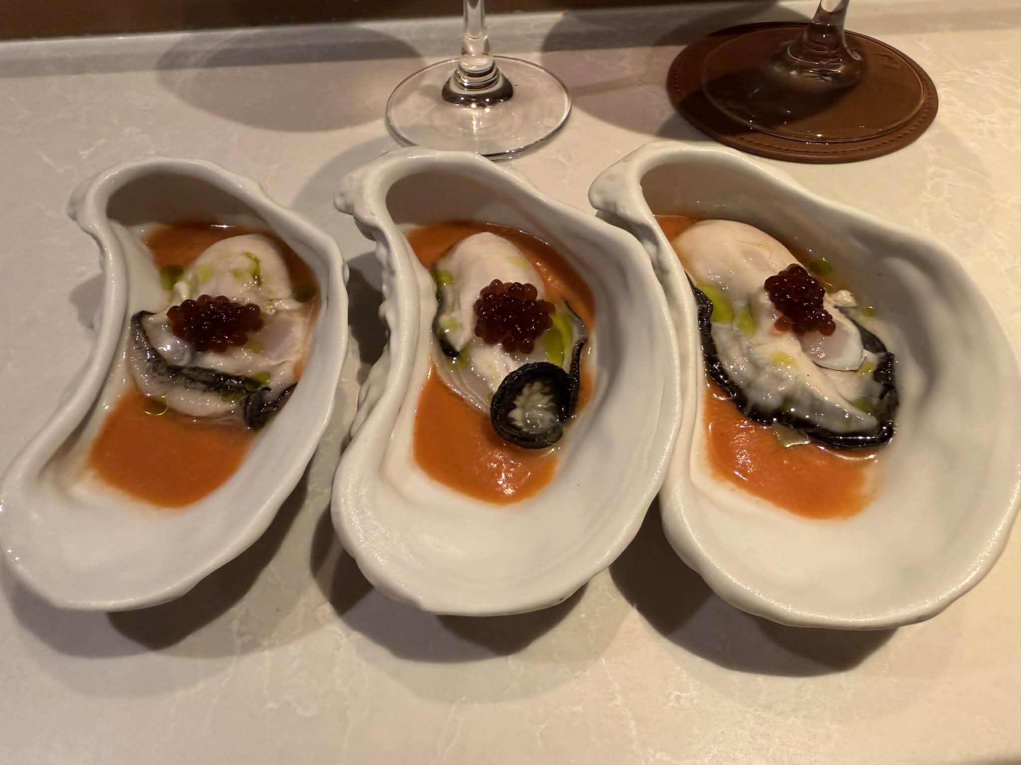 Stepping into FOC Restaurant, an uncommon sight greets you. It’s not every day you see oversized sculptures of the chef and owners’ heads on the wall on one end (they’re inspired by traditional Catalan figures with papier mâché heads), and a motorbike on the other. At this new restaurant in Singapore (well, newly reopened), the decor blends the usual restaurant design with unexpected surprises. Venturing inward, I spotted two rows of mirrors on another wall, which were shaped to resemble Barcelona’s cityscape from an aerial view. It’s a playful nod to the restaurant’s Catalan roots, no surprise if it still holds its reign as one of the best Spanish restaurants in Singapore.
