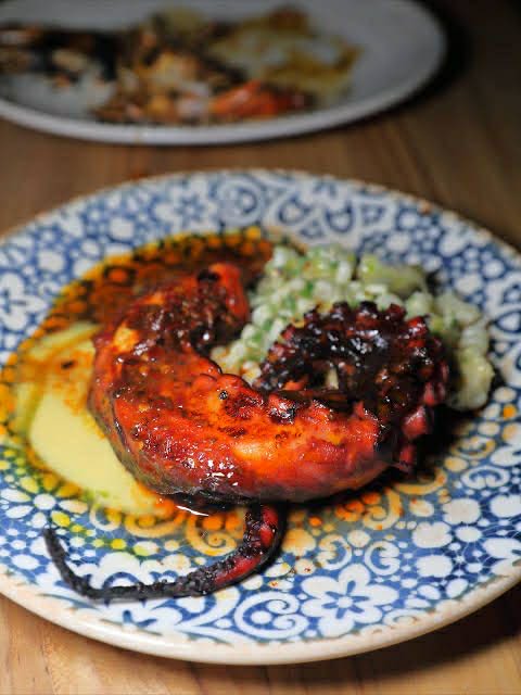 The concept here is cooking over flame where 90% of the cooking is done over the woodfire grill. The menu is designed around a series of starters and the meats where you can expect prime cuts of beef to seafood and sides. You can choose to do ala carte orders or opt for the Chefs Feast (S$118) which features a selection of dishes & cuts.