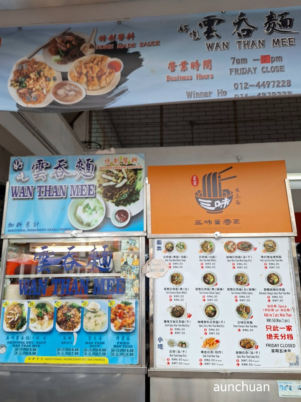 The menu and price list for the wantan mee of various flavours and their combinations.