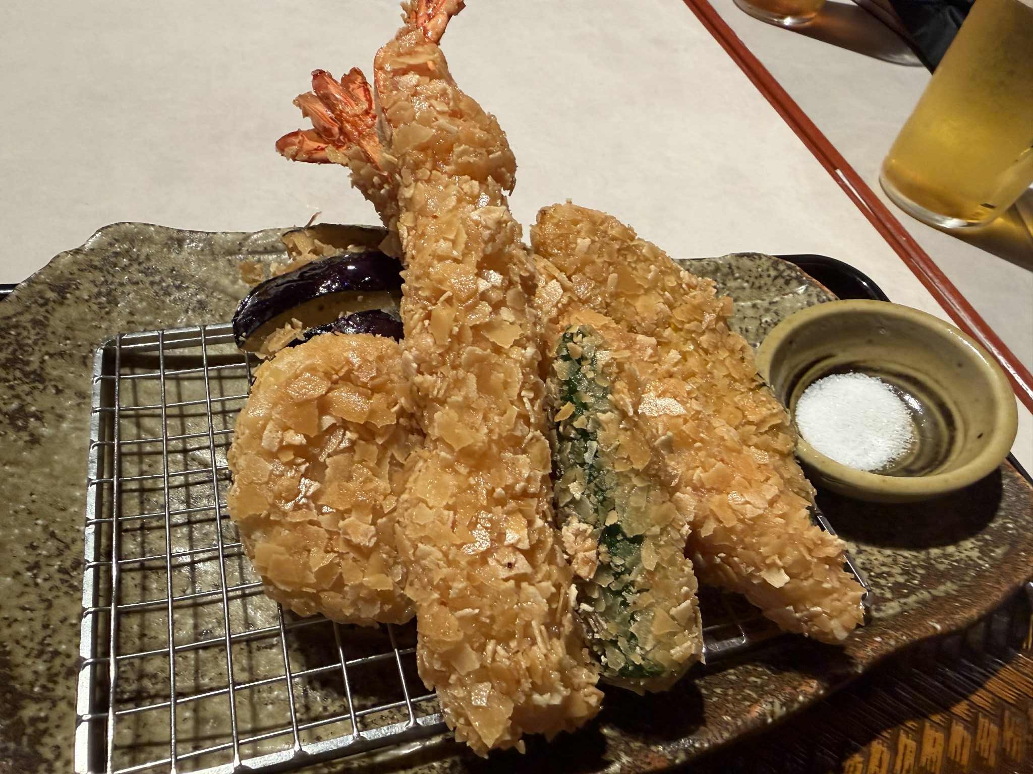 Komepura is literally named after rice flour. Kome for rice and combining it tempura. This is a different batter to what we are used to. Using rice flour, you get a chewy & fragrant texture coating. Not everyone likes this - but I certainly did. I’d admit you might get bits stuck in your teeth, but that’s just like eating mochi or other delicatessen, albeit a little more chewy.