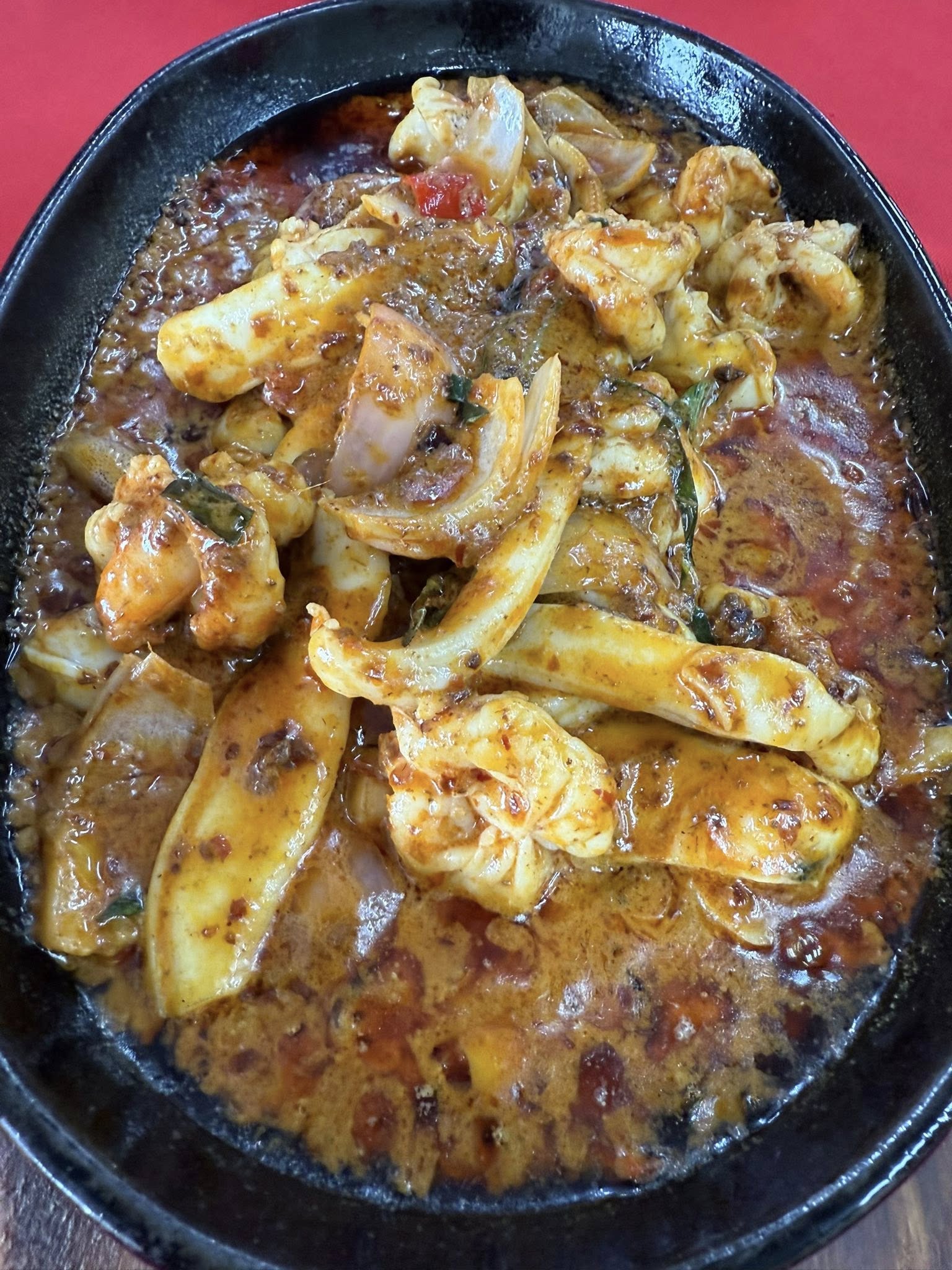 The fish head was a bit salty, sizzling squid and prawn was a bit oily, but still ok lah. Total was RM112.