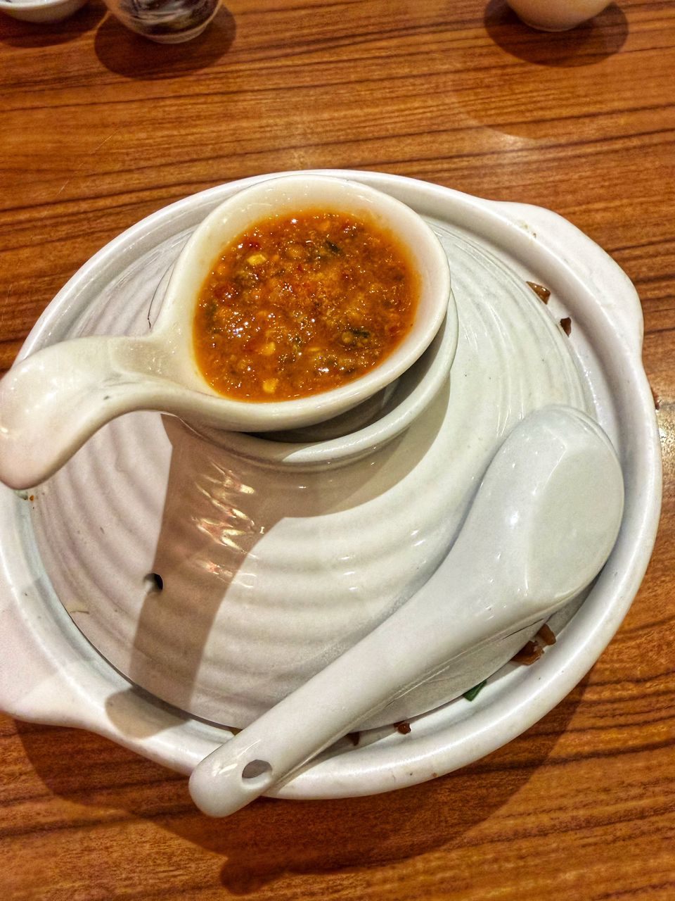 The claypot presentation with the lifted lid and separate chilli cup gave it a ceremonial feel. The chilli was the standout element.