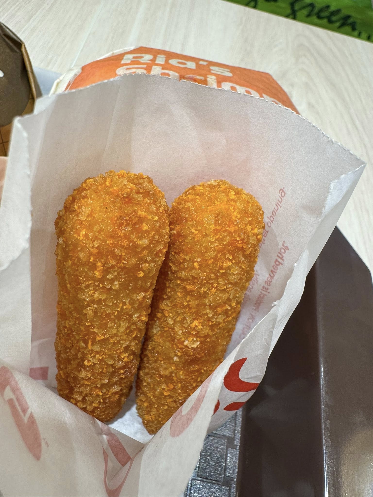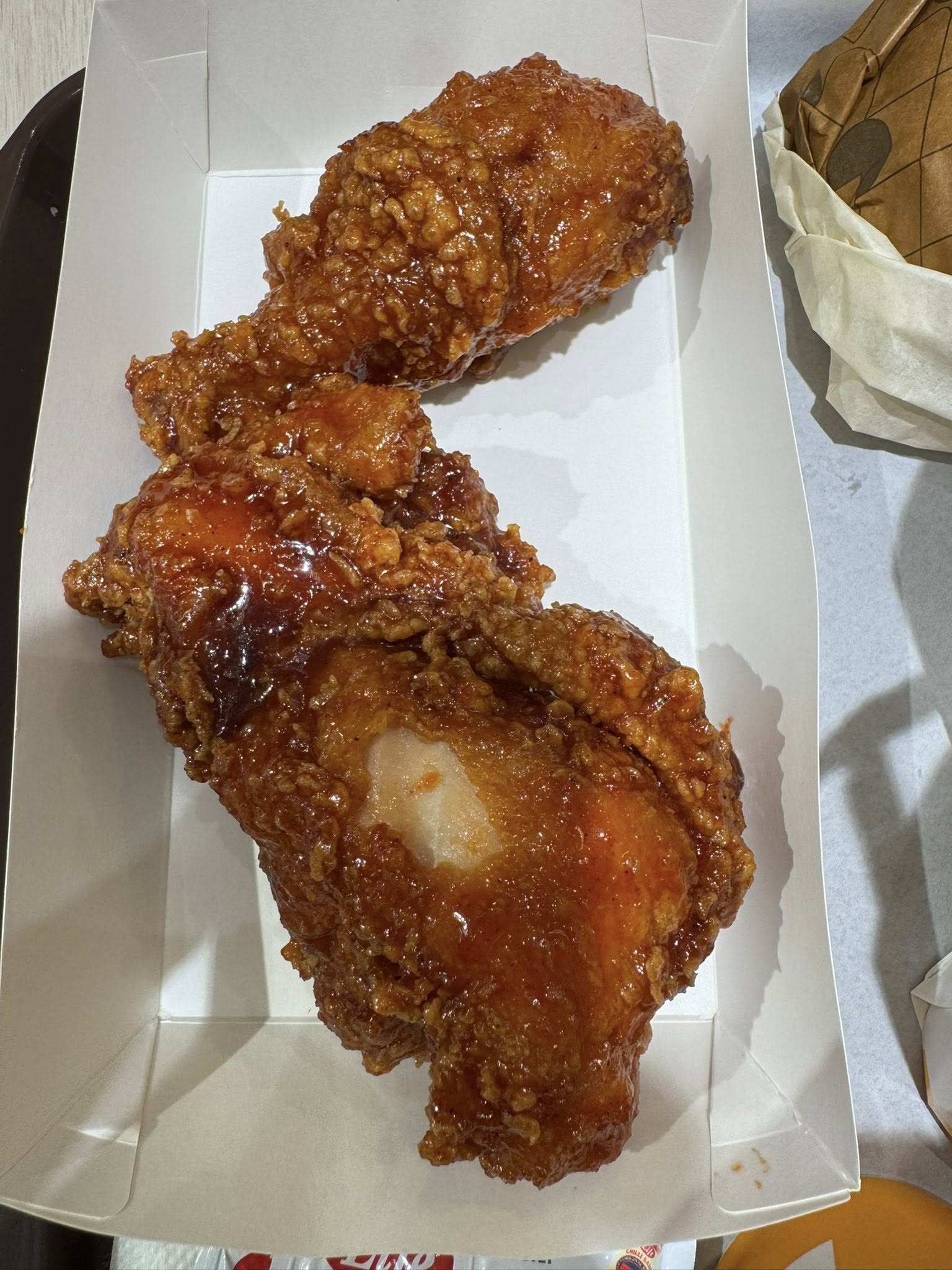 We had the shrimp burger from Lotteria when in Seoul and now it’s here at the Curve. The shrimp burger was very good but needed more sauce. Bulgogi burger also good if u like Bulgogi. The K-sauce chicken was unexpectedly good with very good sauce. Not spicy but well flavoured. The popcorn chicken and cheese stick were as expected.