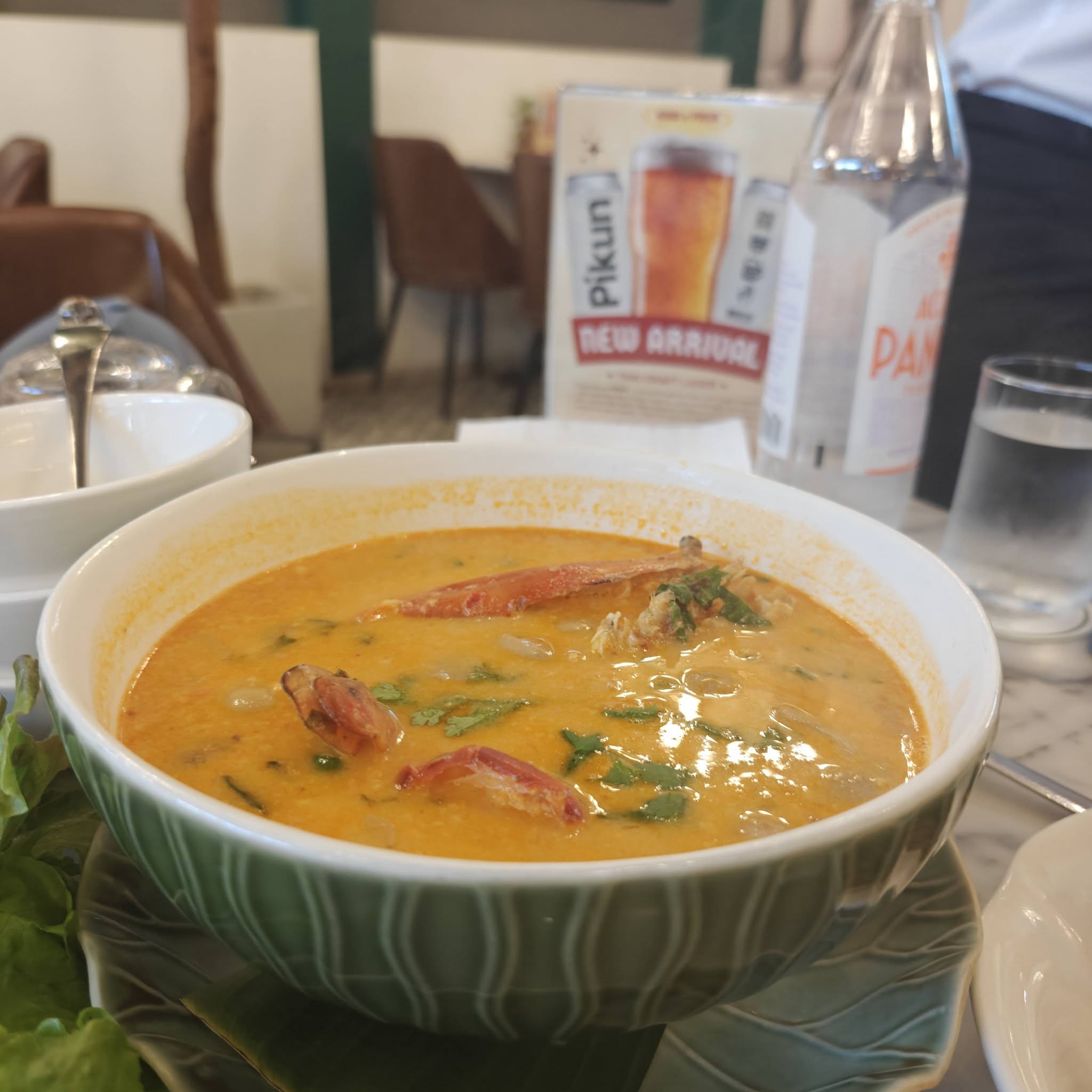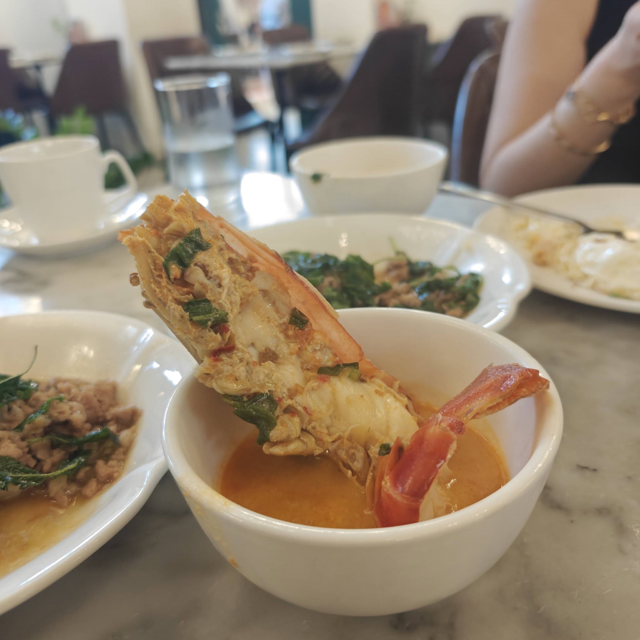 The tom yum soup was thick and full of flavour and came with juicy giant prawns.