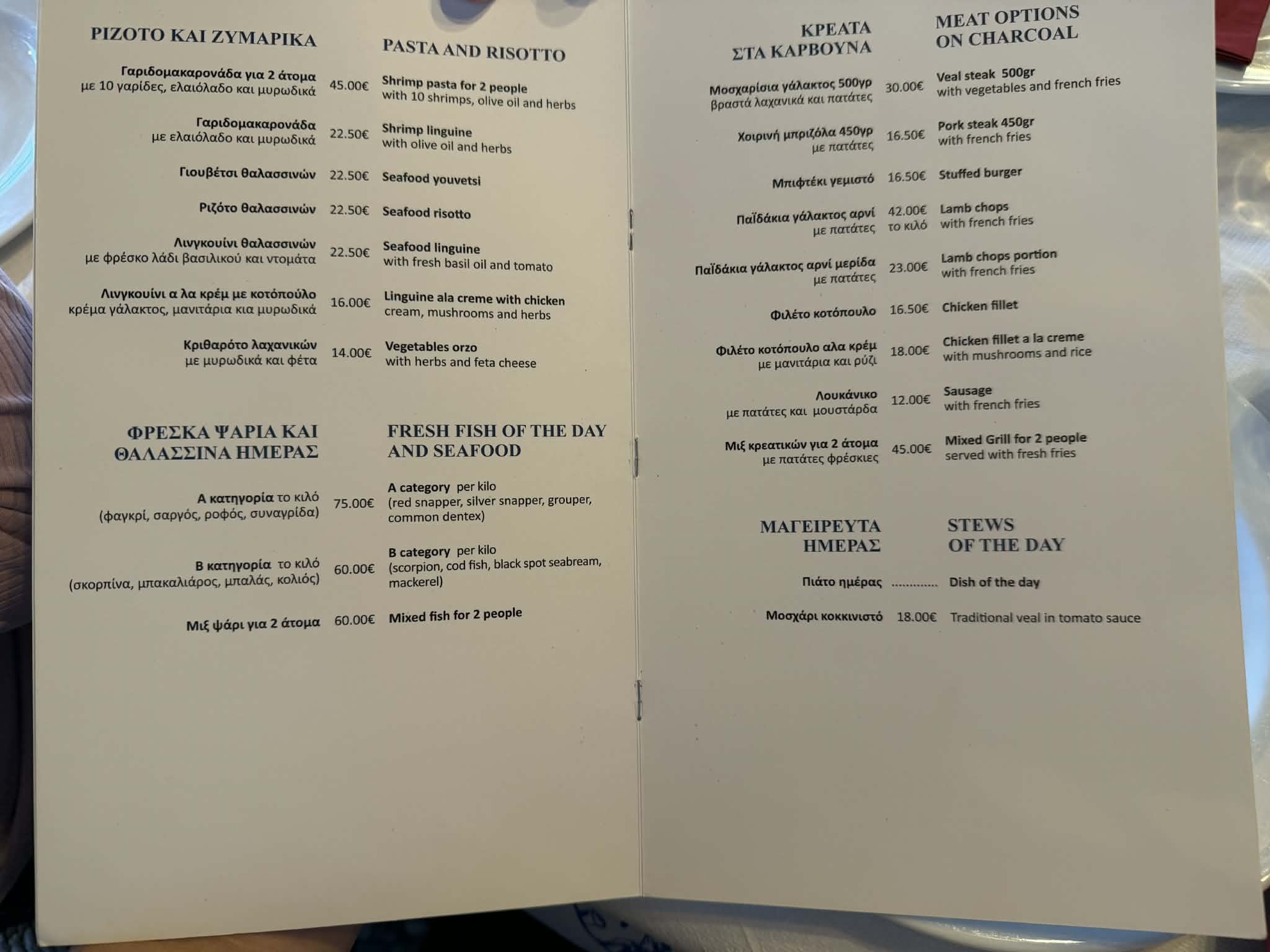 If I had to pick a dish - it would be the seafood stew and and the pork steak. Ironically the landlubbers prevailed.