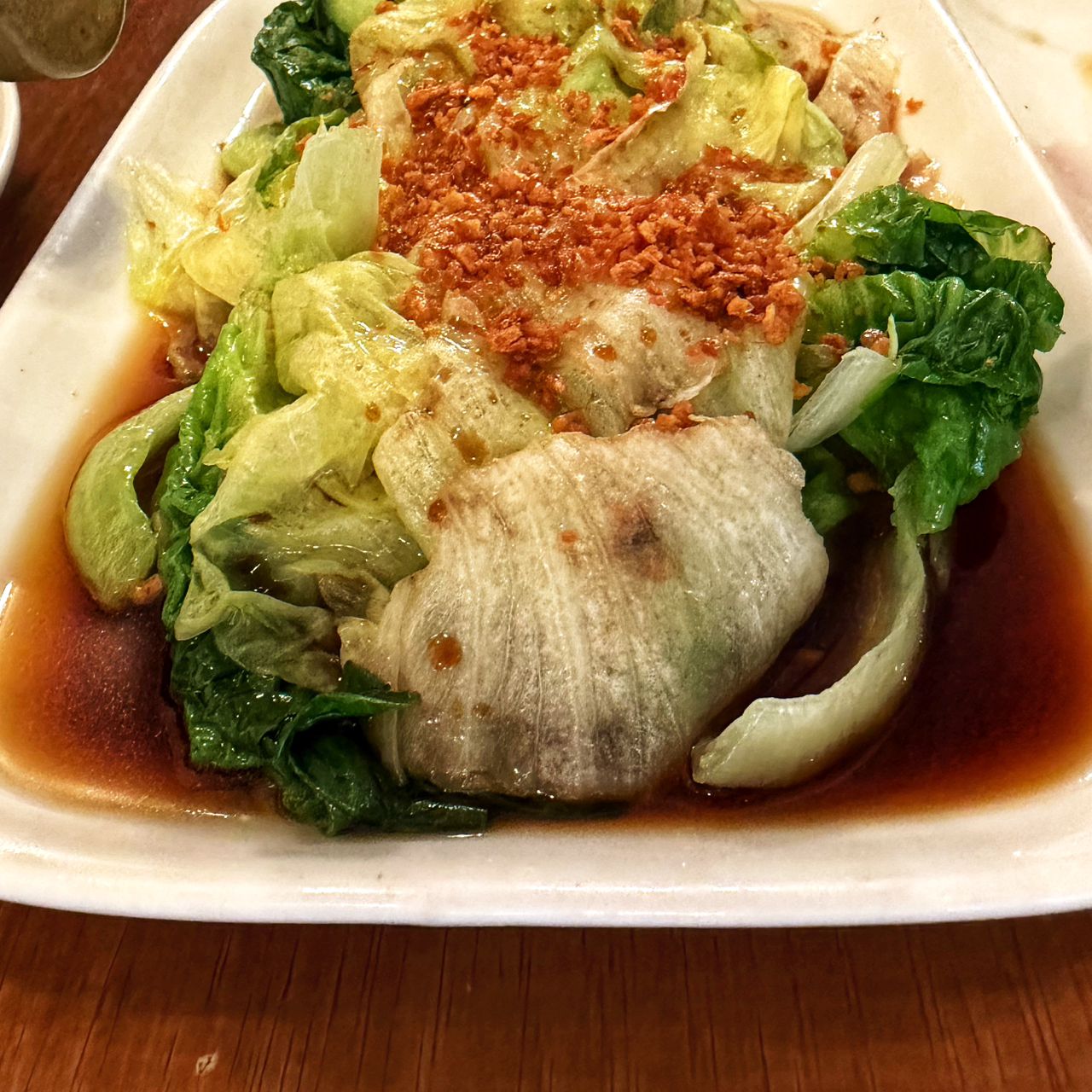 The lettuce in garlic oyster sauce delivered exactly what you expect: soft, slightly wilted leaves soaking up sauce, with fried garlic adding crunch.