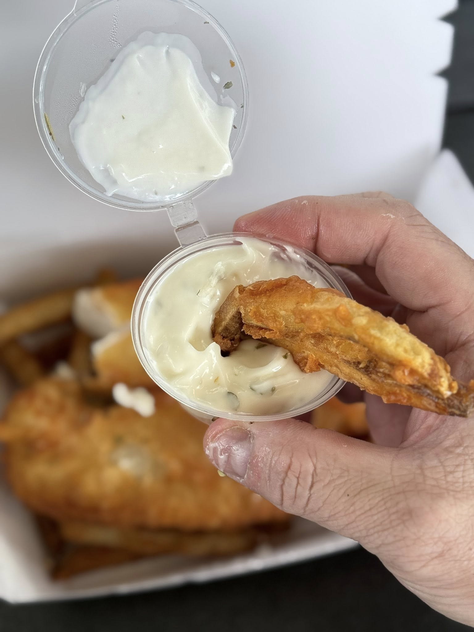 • Tartar sauce and lemon slices are the soul of the dish; the acidity perfectly balances the richness of the oil.