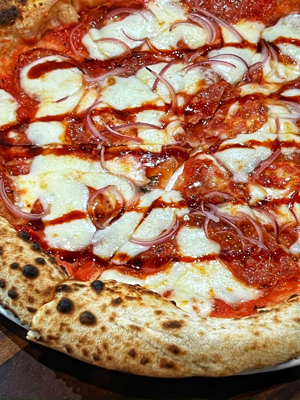While the pizza's crust was tasty, the combination of ingredients felt a little off. The sparing use of pepperoni, both in portion and thickness, made the pizza feel underwhelming. The addition of onions also distracted from what should have been a simple, bold, meaty flavour profile.