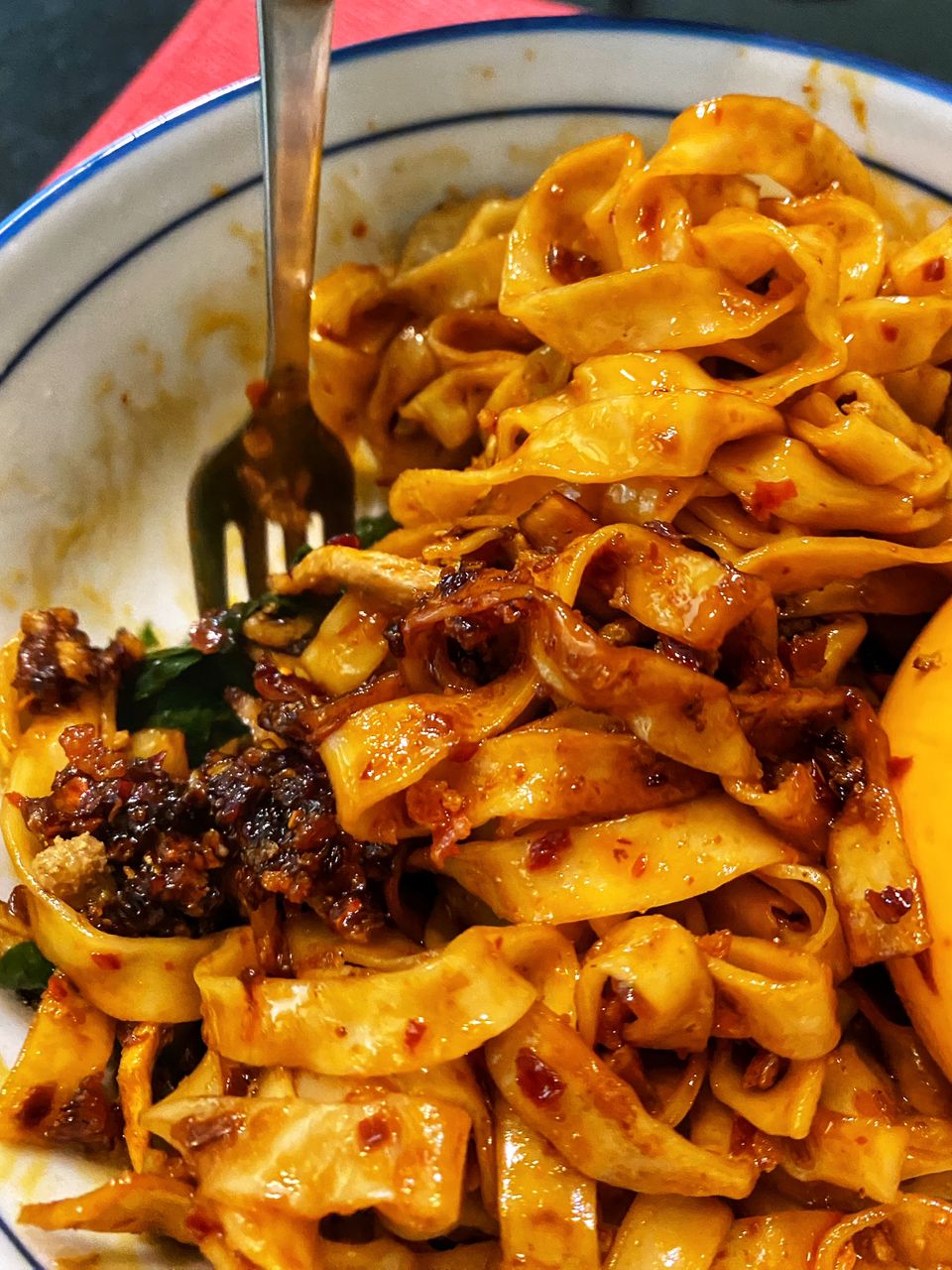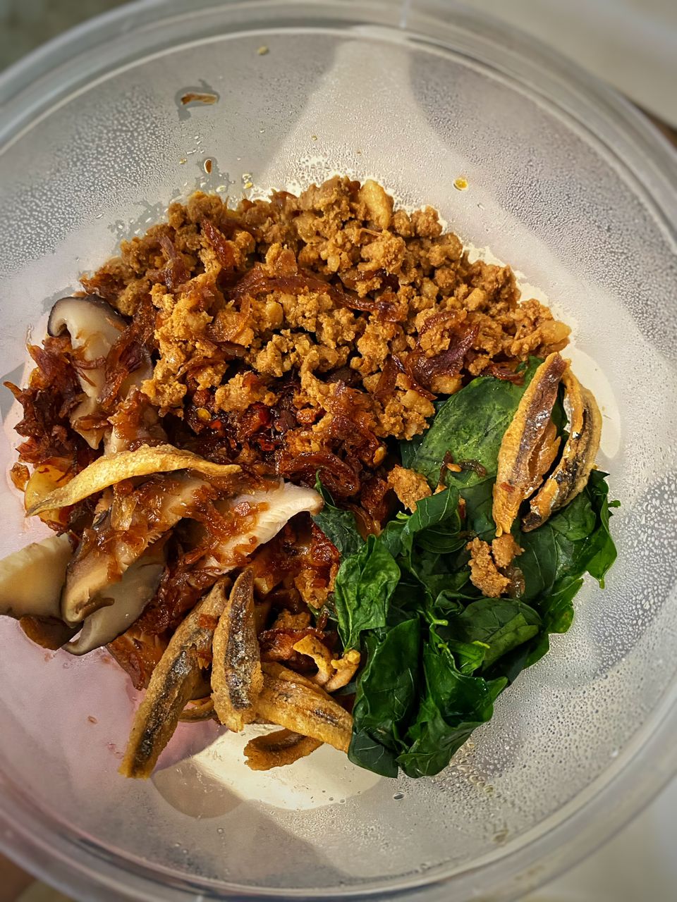 The soup pan mee (RM13 on the delivery platform) came with broad, hand-torn noodles that had just the right thickness and chew, swimming in a broth layered with anchovy depth, sweetness from the sayur manis, and a savoury note from minced pork. The earthy slices of shiitake mushroom gave it more body, while crispy anchovies and fried shallots added that essential textural crunch. It was hearty without being heavy, a bowl that felt both rustic and well-balanced.