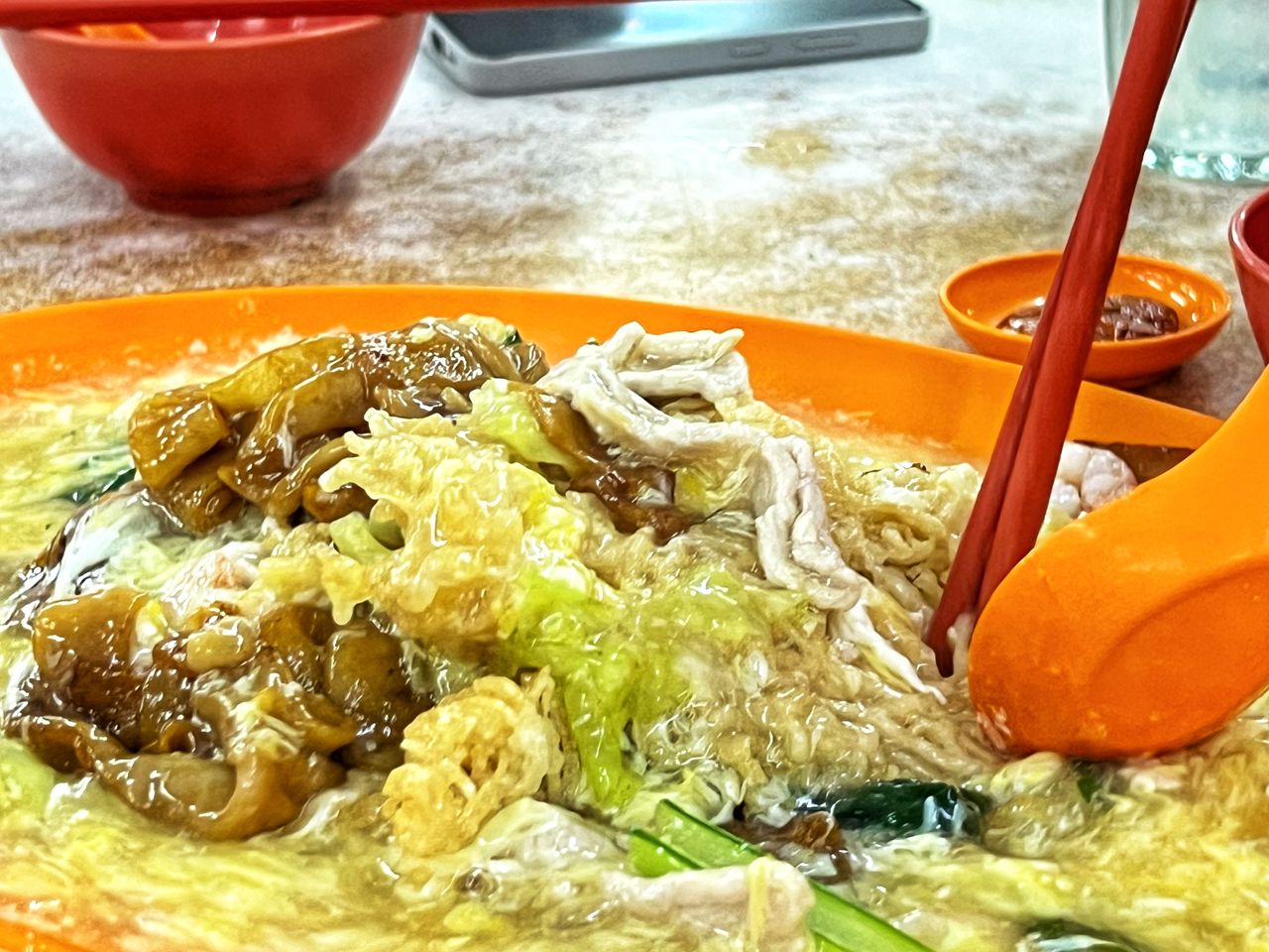 The Kung Fu Chau Ying Yong (Cantonese Fried Yin Yong) was the superior dish of the night. This “Yin Yong” preparation combines two distinct textures—broad flat rice noodles (hor fun) and crispy rice vermicelli (mee hoon) all smothered in a velvety, egg-based gravy.