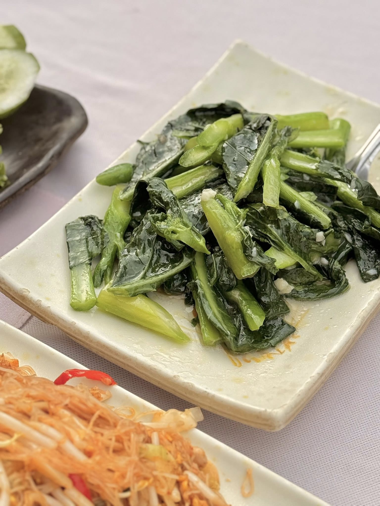 The stir-fried kailan maintained a light and crisp texture, perfectly balancing the heavy flavors on the table.