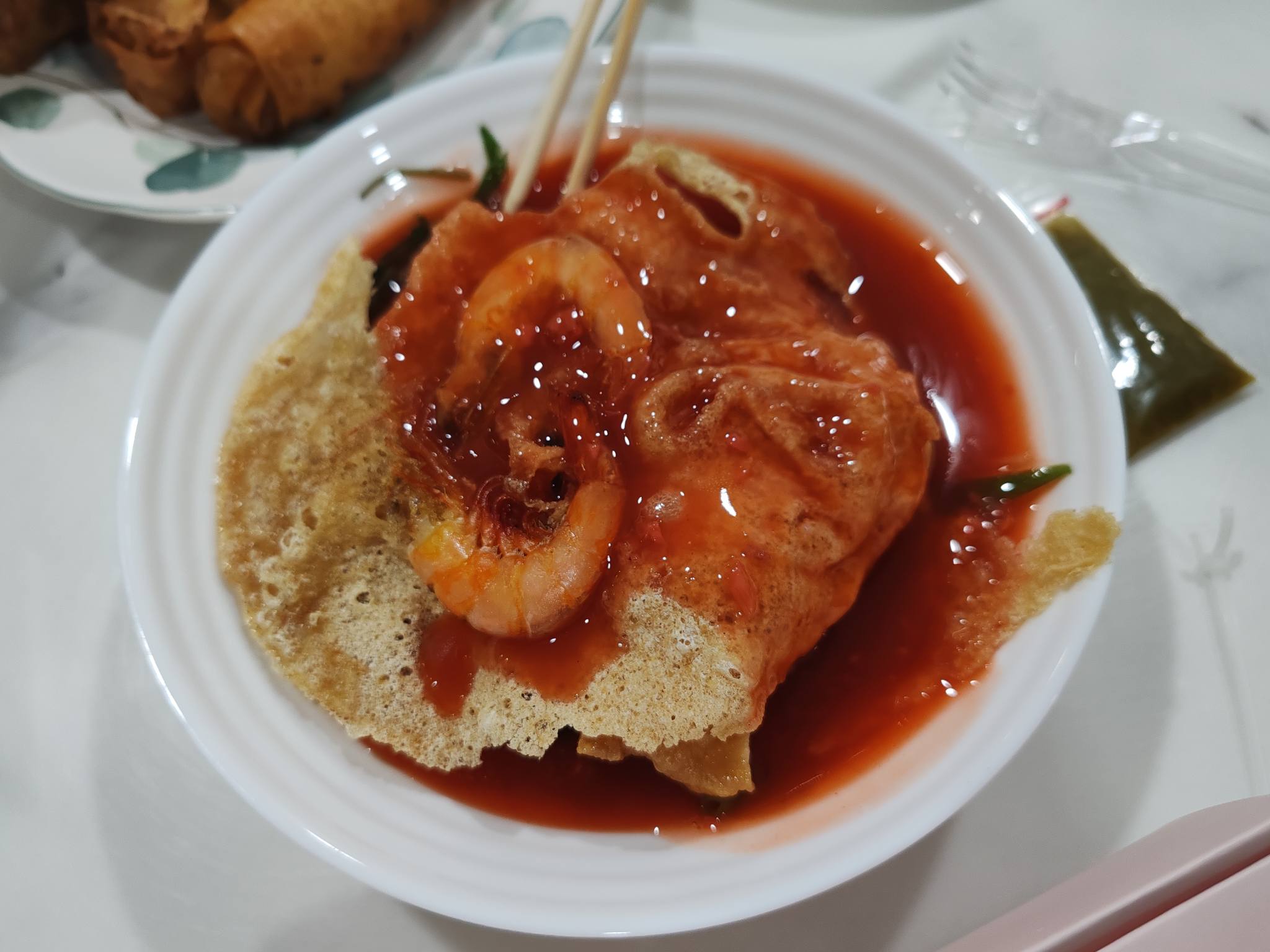 The Popiah filling got Bangkuang, Char siew, crab meat n chicken too.