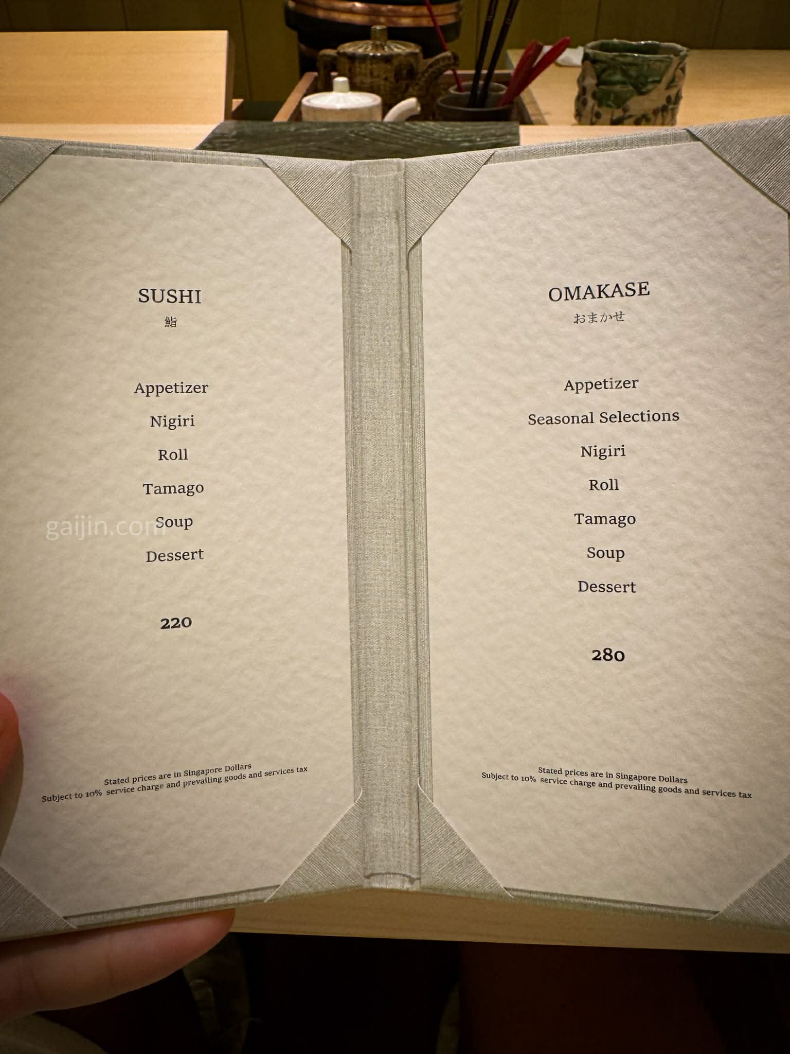 Since I dropped in during the last 30 minutes of lunch without a booking, I went for the nigiri omakase priced at SGD220. Anything beyond that felt like I might be inconveniencing the chef given I had no booking. They offer two choices: a sushi omakase or a lunchtime omakase, catering to different tastes and times.