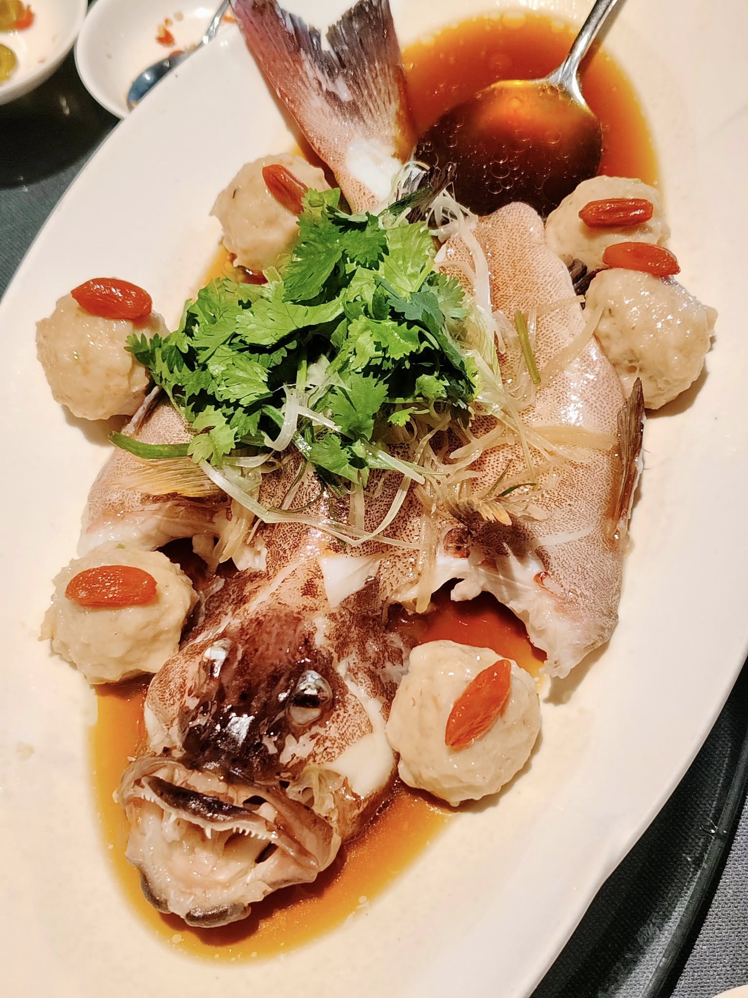 Steamed Coral Trout with T Palace Fresh Made Prawn Balls