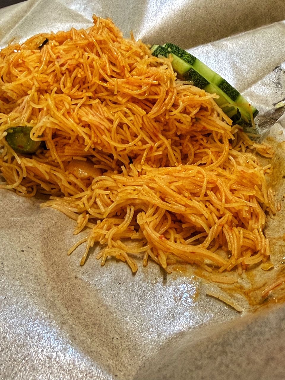 I ordered the nasi lemak and mee hoon, which came to a total of RM15.50. The nasi lemak was paired with sambal petai, which provided a significant “burn” and featured a very strong petai flavor. While the taste was impressive, the portion of petai was a bit sparse with only five pieces included.