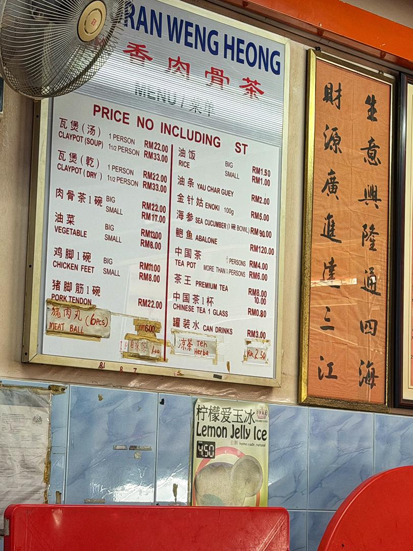Weng Heong offers solid value for the quality of its traditional Klang recipes. With soup portions starting at RM15 and generous dry variations, it remains a reasonably priced destination for high-quality Cantonese-style herbal broth.