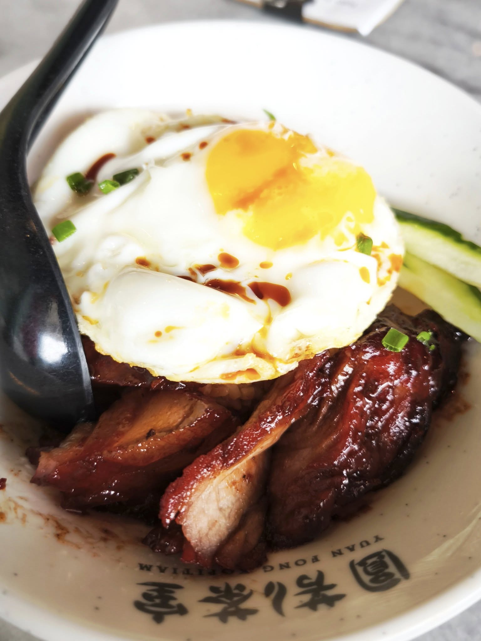 Pork curry nasi lemak and char siew pork lard rice at Yuan Fong 2 Kopitiam Bdr Mahkota Cheras.